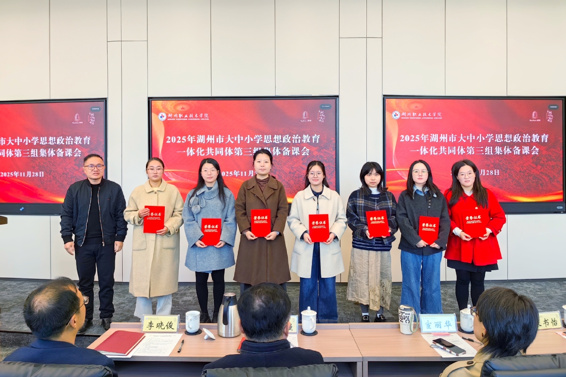 1128日,学校举办2025年湖州市大中小学思想政治教育一体化共同体第三组集体备课活动校党委副书记李晓俊,市大中小学思想政治教育一体化共同体第三组成员单位有关负责人,市新时代职业教育思政课一体化建设专家委员会成员和马克思主义学院全体教师参加活动。